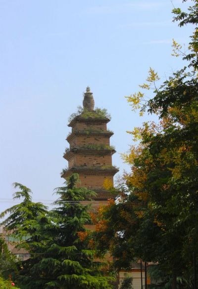 这座古塔名叫净光寺塔,建于唐元和十一年(816),是全国重点保护文物。这座塔高20.44米,底边长4.65米。十多年前,这座古塔偏离垂直中心线近2米,向北侧倾斜,当时文物部门曾对古塔进行了纠偏。最近几年来,这座古塔受风吹日晒,塔身出现了裂纹,有些砖头因年代久远风化严重,加之塔座地势较低,周围容易淤积雨水。为了保护好这一珍贵文物,眉县博物馆今年9月邀请古建专家对古塔进行修葺,工程包括塔体修缮和塔体外围散水工程及环境治理,计划明年2月中旬竣工。