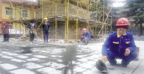 近日,记者在眉县县政府院内看到,一座楼阁式7层砖塔用围挡围着,塔身搭着脚手架,工人正在进行修葺。